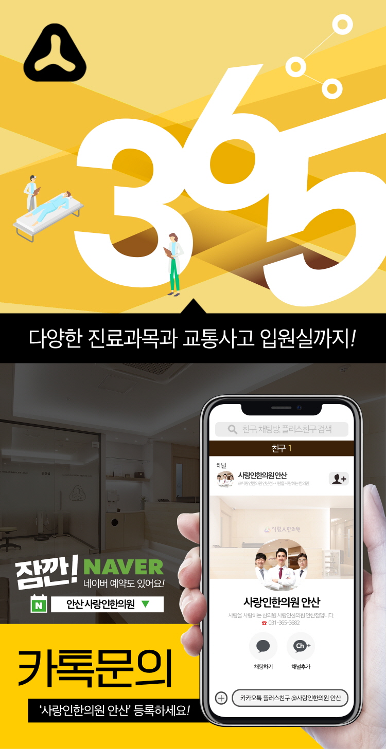 또한, 갑작스러운 교통사고로 인해 후유증을 겪고 있다면 걱정하지마시고 안산중앙동한의원을 내원바랍니다. 통원치료와 입원치료가 모두 가능합니다. 시간적 여유가 없는 분들을 위해 매일 문을 열어두고있습니다. 쉬지 않고 진료가 가능하며, 입원치료의 경우 하루 2회 집중적인 치료를 통해 빠른 회복을 도와드리고있습니다. 영상검사상 별다른 원인을 잡아내지 못했다해서 괜찮은게 아닙니다.